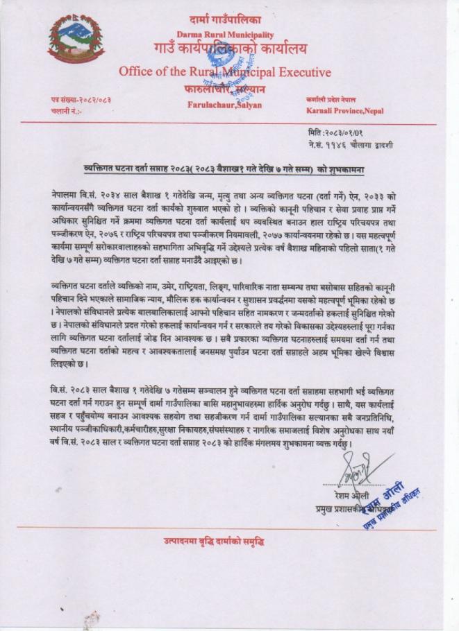 व्यक्तिगत घटनादर्ता सप्ताह २०८३ को शुभकामना