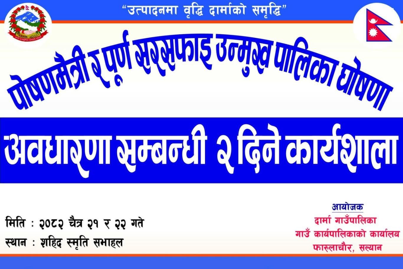 पोषणमैत्री र पुर्ण सरसफाइ उन्मुख पालिका घोषणा अवधारणा सम्बन्धी २ दिने कार्यशाला