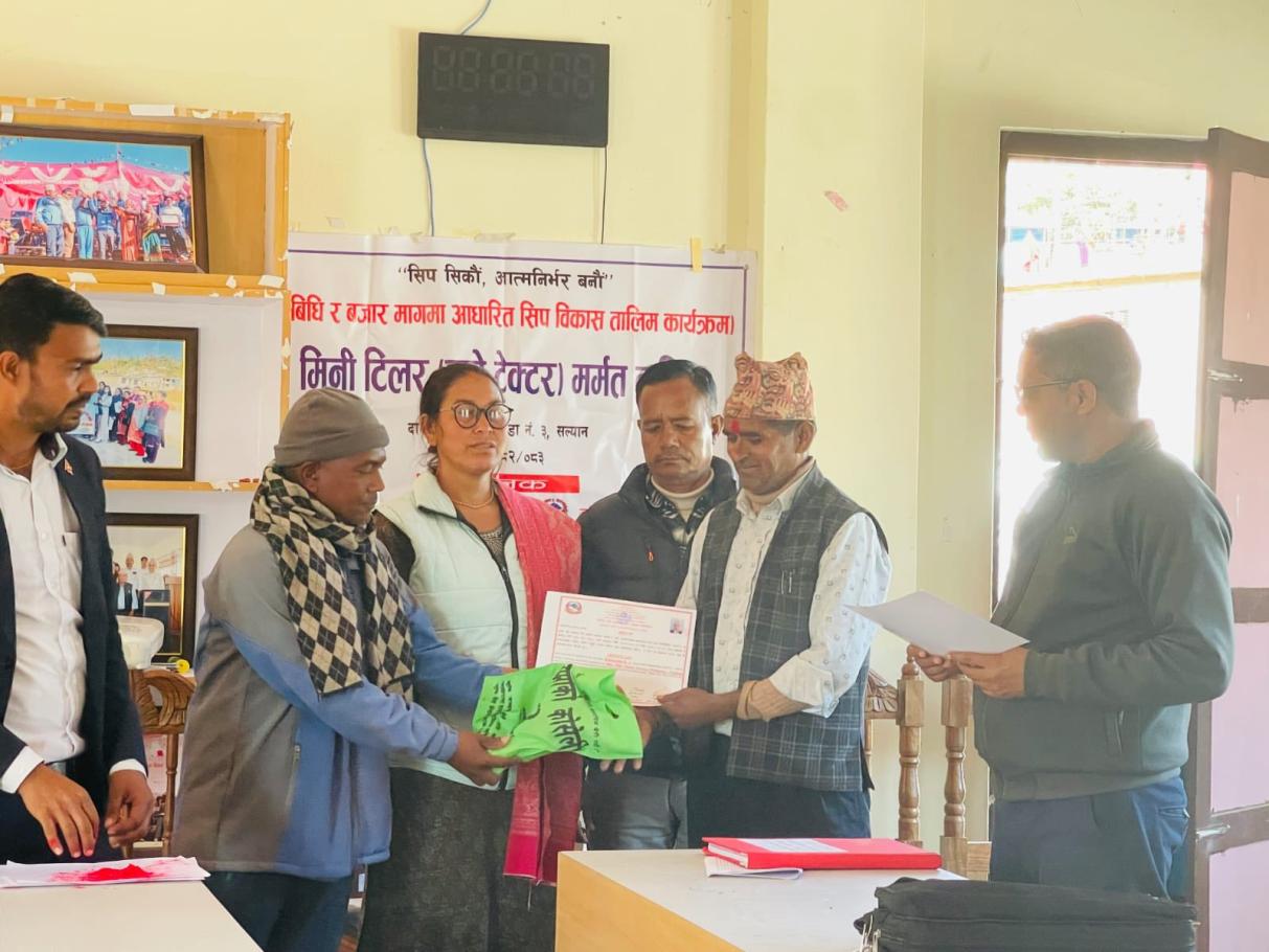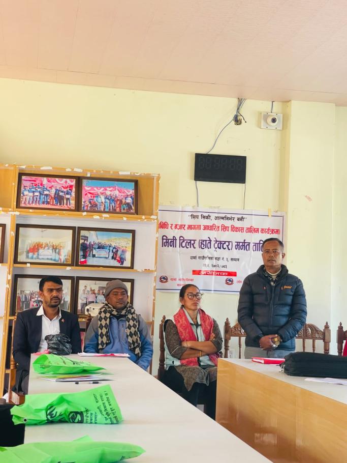 दार्मा गाउँपालिका र उद्योग तथा उपभोक्ता हित संरक्षण कार्यालय, सल्यानको साझेदारीमा सञ्चालित १५ कार्यदिने मिनि टिलर (हाते ट्याक्टर) मर्मत तालिमको समापन सम्पन्न भएको छ।